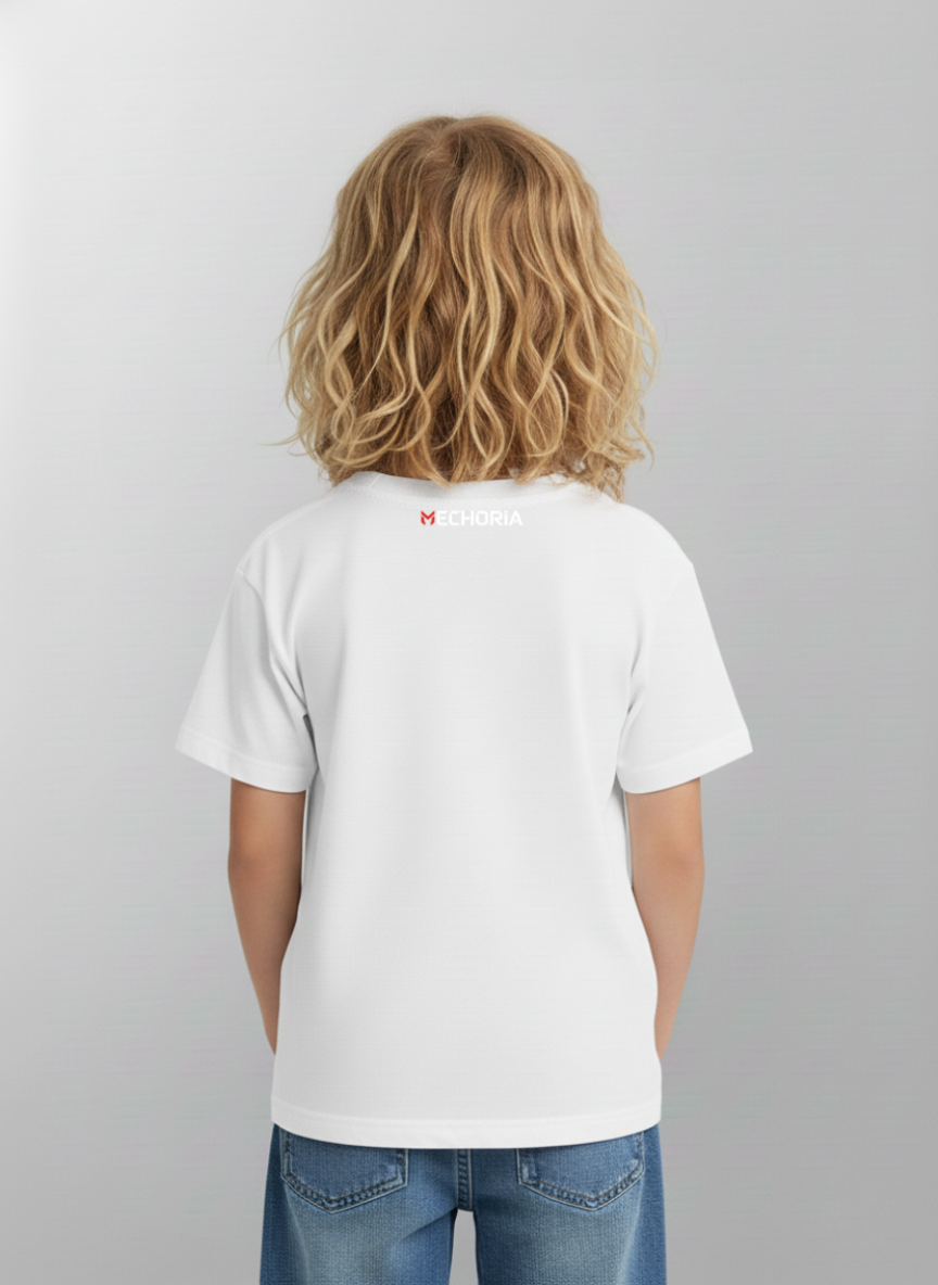 Bawełniana koszulka z nadrukiem robota-mecha w barwach biało-czerwonych, symbolizującego siłę, technologię i ducha Polski.